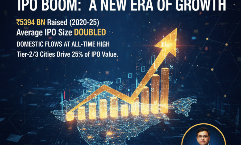 India’s capital markets have entered a new era of dynamism, with initial public offerings (IPOs) in the last five years raising more capital than the previous two decades combined. According to data released by Equirus Capital, companies raised ₹5,394 billion through IPOs between 2020 and 2025—surpassing the ₹4,558 billion raised from 2000 to 2020. What makes this surge even more remarkable is that it was achieved with just 336 IPOs, compared to 658 issues in the earlier 20-year period.