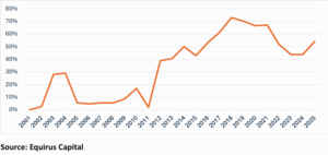 One of the defining features of this IPO boom is the growing share of Offer for Sale (OFS) transactions. Promoters and financial sponsors are increasingly leveraging IPOs to monetize equity holdings, with OFS now playing a central role in exit strategies. Equirus data shows a steady rise in OFS as a percentage of total funds raised, reflecting the market’s growing comfort with secondary share sales.