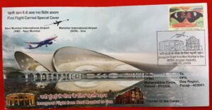 Smt. Suchita Joshi, Postmaster General, Navi Mumbai Region released a *First Flight Carried Special Cover* on 25.12.2025 commemorating the historic moment of commencement of the first flight from Navi Mumbai International Airport (NMI) to Manohar International Airport (GOX) Goa.